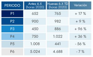 En los casos de traspaso de la potencia para las tarifas 3.0TD y 6.XTD, la potencia contratada para P1 será la actual P1, para P2, P3, P4 y P5 será la actual P2 y para P6 será la actual P3.